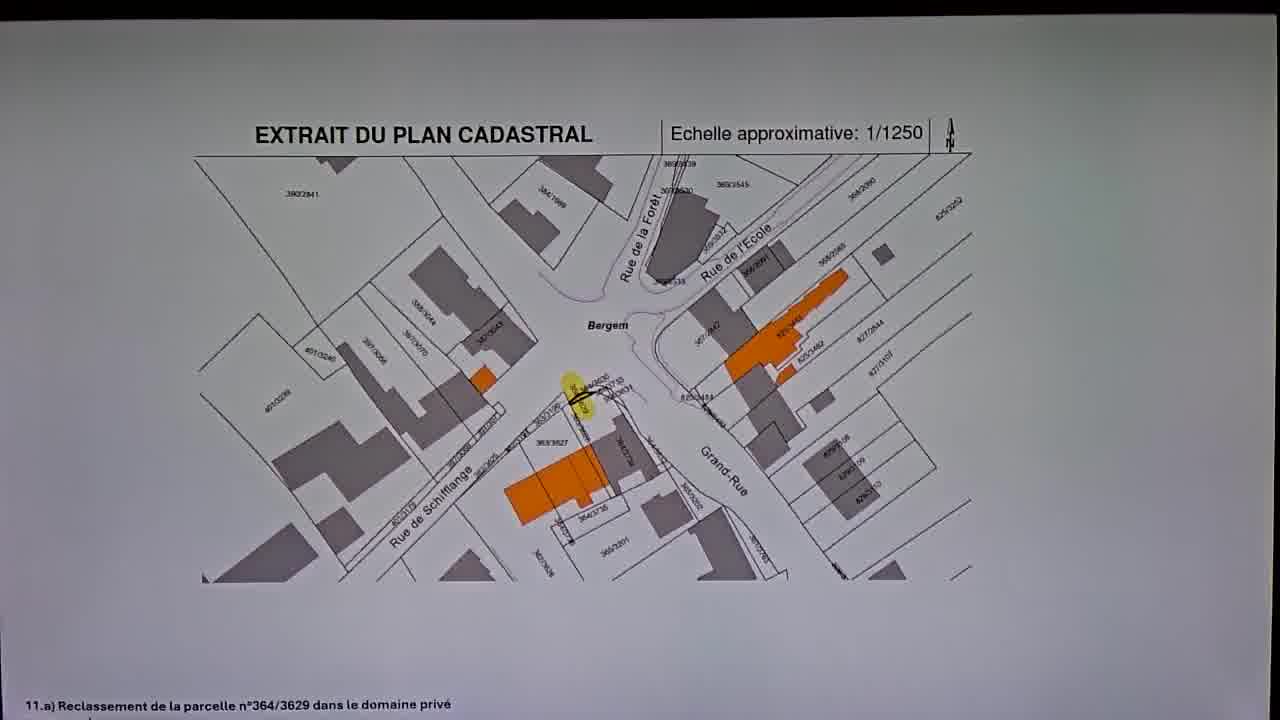 11) Aménagement communal a) Reclassement de la parcelle nº364/3629 dans le domaine privé communal