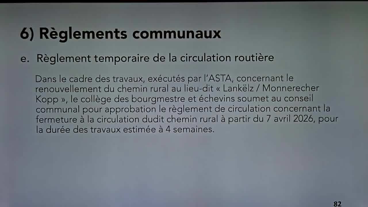 6) Règlements communaux e) Règlement temporaire de circulation routière